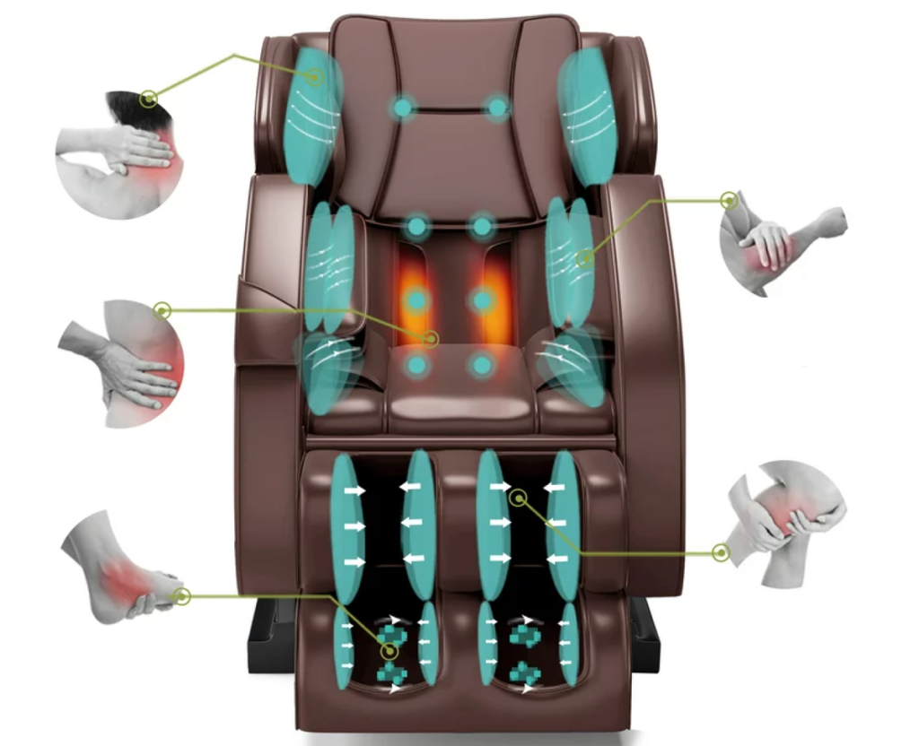 Специальные ролики и воздушные подушки в массажном кресле воздействуют на области всего тела